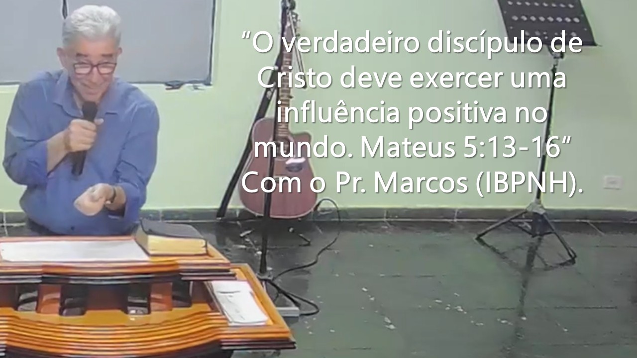 “O verdadeiro discípulo de Cristo deve exercer uma influência positiva no mundo. Mateus 5:13-16“ Com o Pr. Marcos (IBPNH).